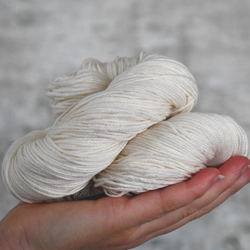 This Superwash sport is a firm favourite of ours. With a high twist this is a robust yarn that sucks up the dye, speckles superbly and makes a light fabric which makes wonderful garments. The colours appear bright and clear. A great option for sport weight socks as this contains Nylon. A great yarn option for kids clothing.