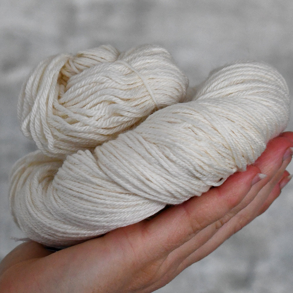 This yarn is soft and velvety. It takes the dye really well and colours appear bright and clear. It can be knitted on a few different needle sizes to get a variety of gauges whilst maintaining a really nice fabric with slightly different properties. 3.25mm needles gives a fabric with softness and a lovely drape, whilst 2.75mm provides more stability whilst maintaining its velvety texture.